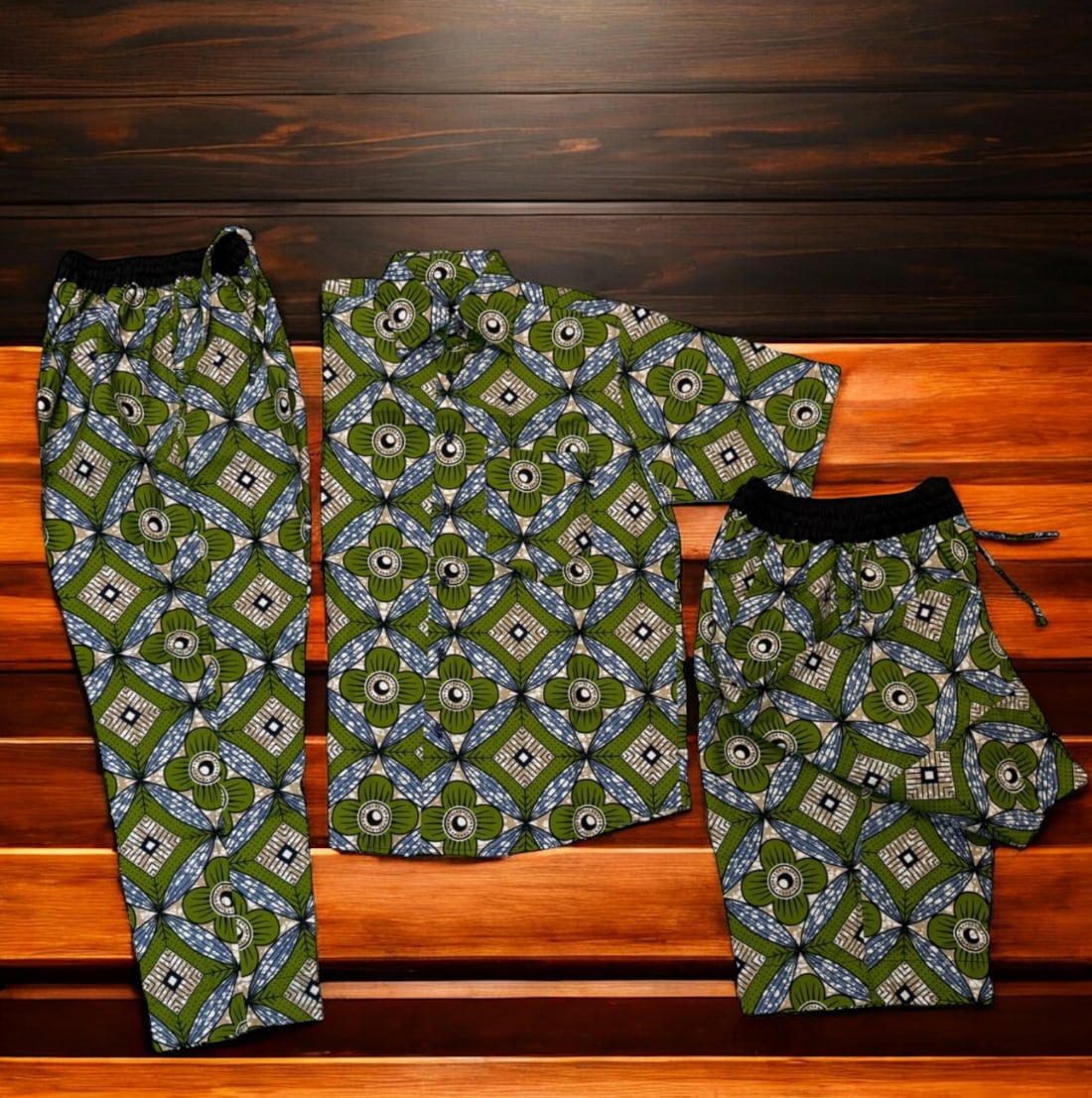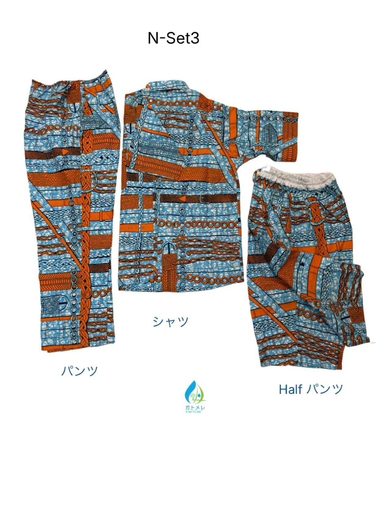 アフリカンプリント 半袖シャツ+2パンツset(衣装)