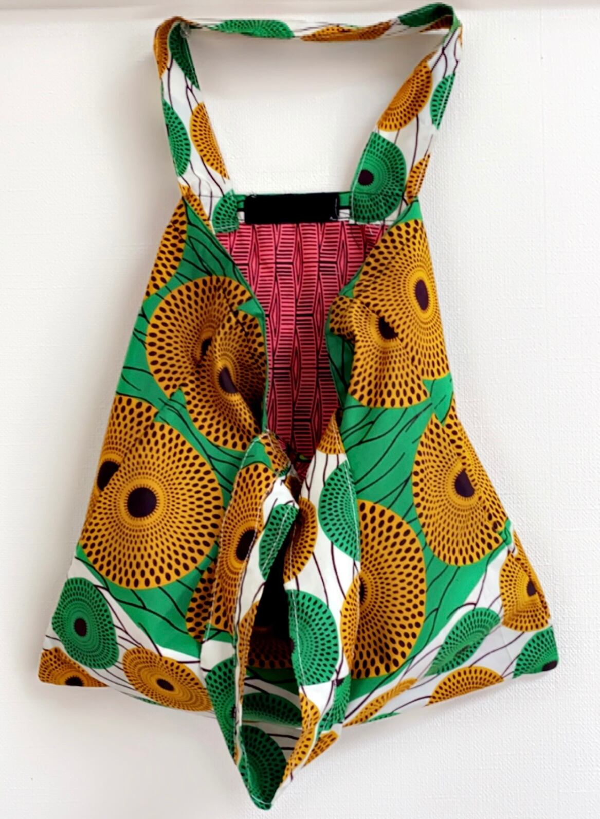 カラフルで個性的なアフリカのパーニュ生地を使った、くたり 柔らかい軽量バッグです。お子様から大人の方まで楽しく使えるおすすめアイテムです。長方形のシンプルな デザインで、男性の方にも気軽にアフリカ布バッグを楽しんで頂ける様なスタイルです。裏地付き、ポケットが付いています。