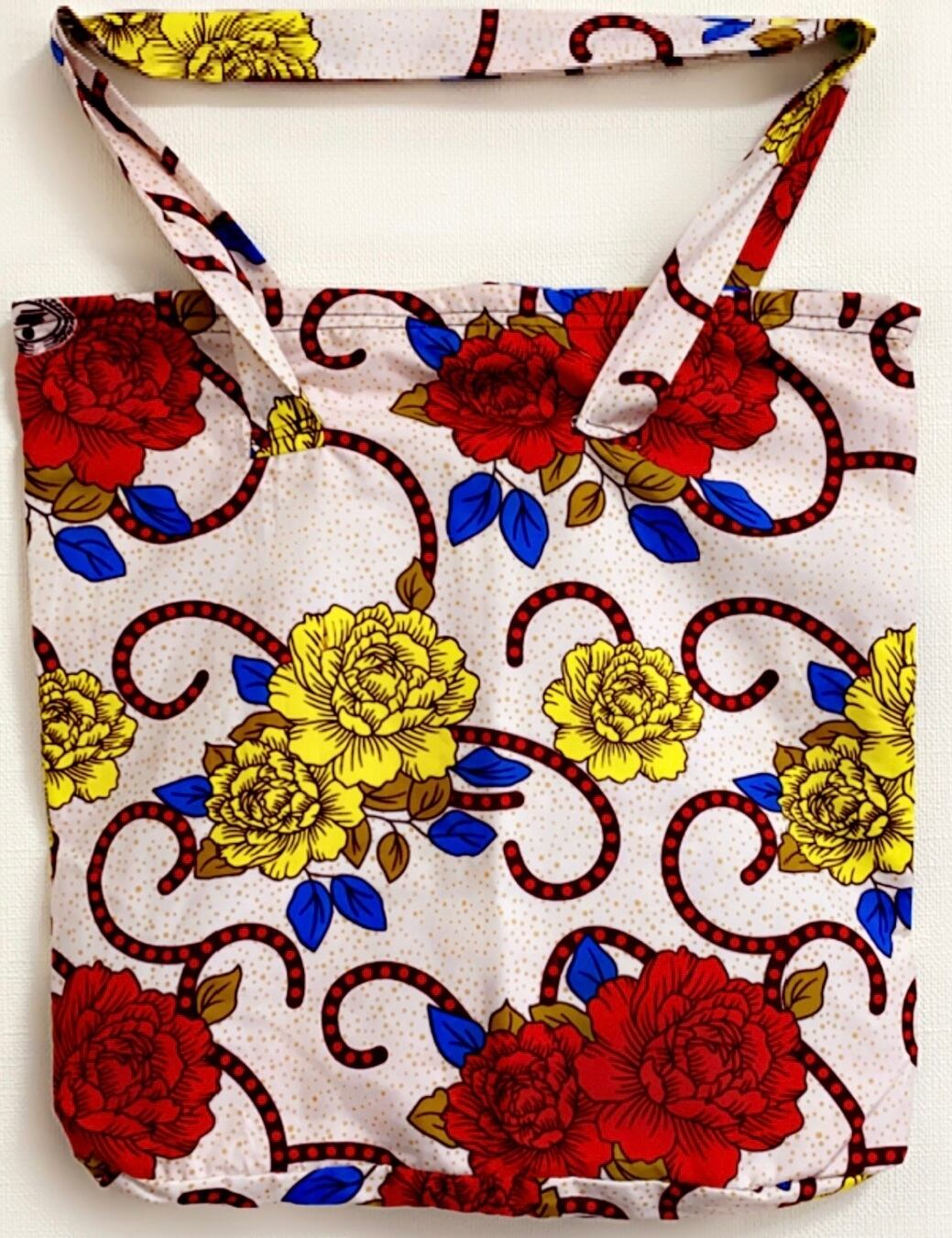 カラフルで個性的なアフリカのパーニュ生地を使った、くたり 柔らかい軽量バッグです。お子様から大人の方まで楽しく使えるおすすめアイテムです。長方形のシンプルな デザインで、男性の方にも気軽にアフリカ布バッグを楽しんで頂ける様なスタイルです。裏地付き、ポケットが付いています。